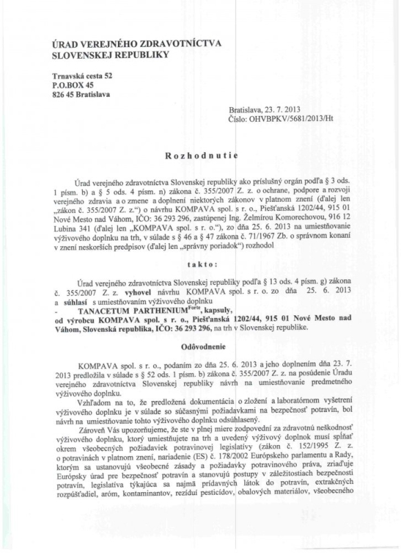 Výživový doplnok Tanacetum Parthenium forte vďaka svojej kombinácii účinných zložiek ako je vitamín B2 a vitamín C, pôsobí priaznivo na normálne funkcie obehovej a nervovej sústavy. Obsahuje tiež rimbabu obyčajnú (Tanacetum Parthenium), ktorá prispieva k zmierneniu príznakov menopauzy a podporuje uvoľnenie a relaxáciu.