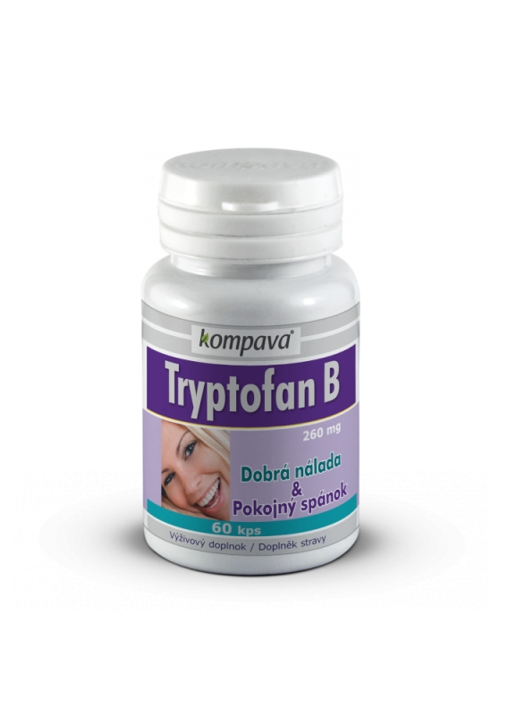 L-tryptofán je esenciálna aromatická aminokyselina. Okrem syntézy proteínov má významnú úlohu v CNS ako prekurzor neurotransmiteru serotonínu (hormón dobrej nálady) a hormónu hypofýzy melatonínu (spánkový hormón). Tryptofan B obsahuje aj vitamíny B6 a B3, ktoré prispievajú k správnemu fungovaniu nervového systému a psychiky, prispievajú tiež k zníženiu miery únavy a vyčerpania.